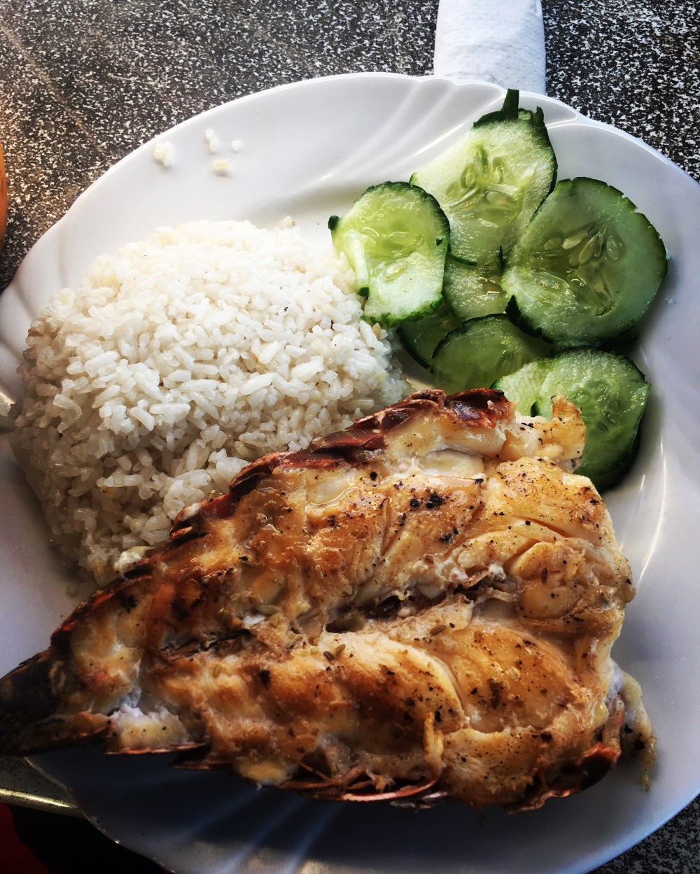 My first meal in Cuba was an 8 oz.-grilled to perfection lobster with rice and cucumbers. We ate this on a quiet and beautiful beach along with some of the best pina coladas I’ve ever tasted.